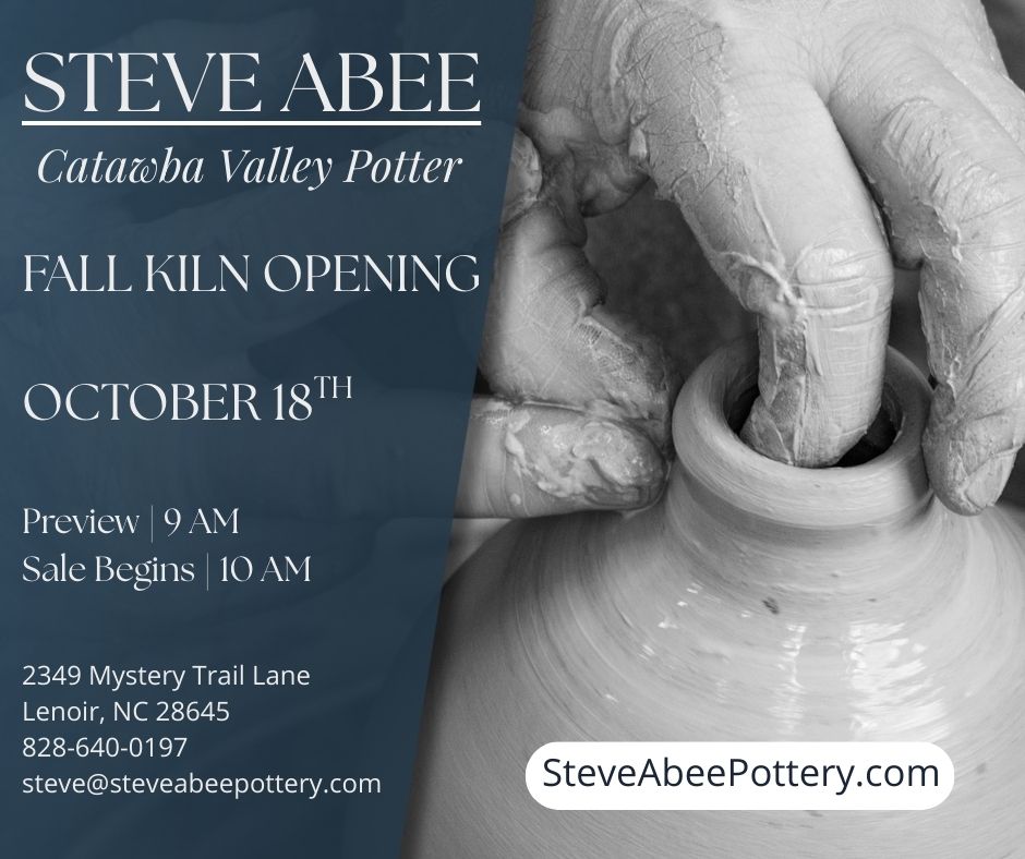 Steve Abee Pottery Kiln Opening 2349 Mystery Trail Lane, Lenoir, NC, United StatesSteve Abee Fall Kiln Opening – October 18th, 2025 Mark your calendars for the Fall Kiln Opening at Steve Abee…
